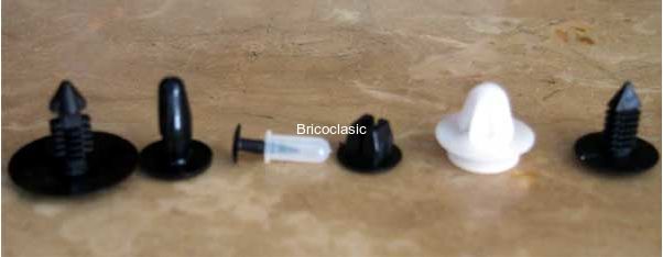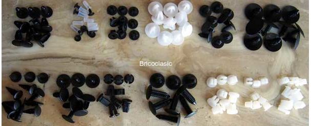 Sujecciones en plástico de diferentes tipos, para paneles e interiores.